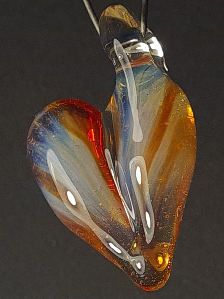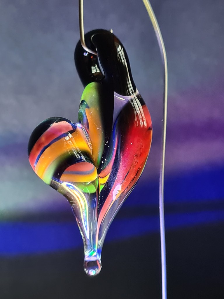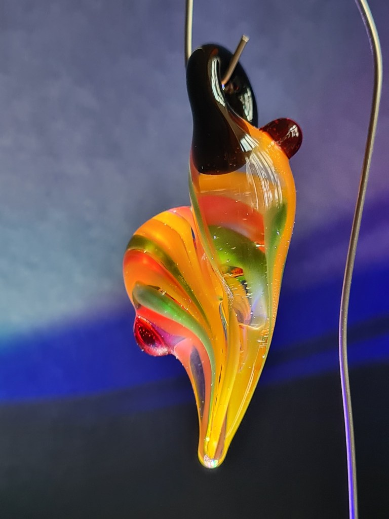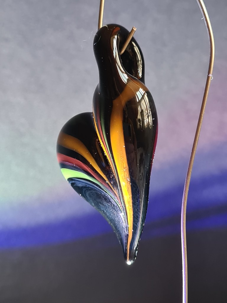 Borosilicate glass formed in the flame to create beautiful pieces of wearable art.