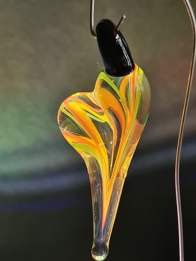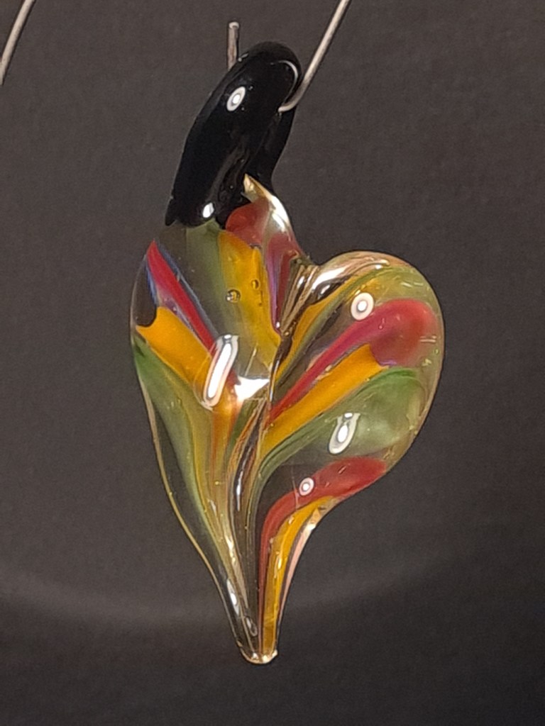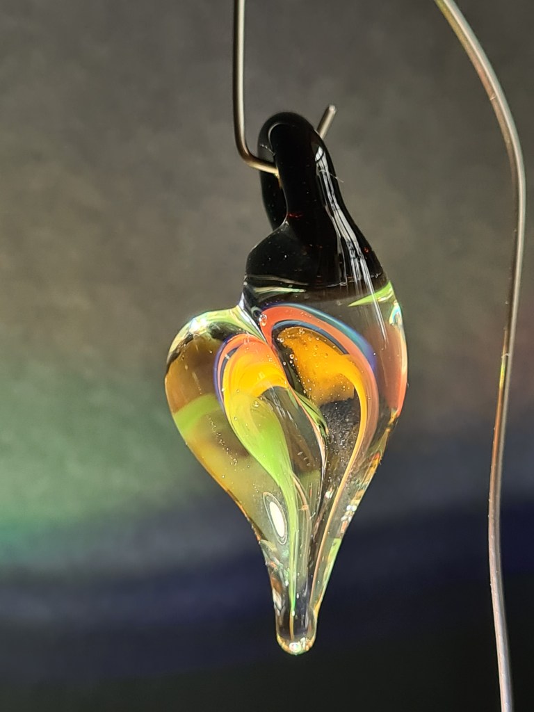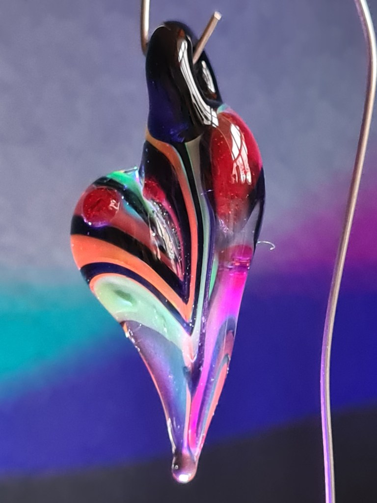Borosilicate glass formed in the flame to create beautiful pieces of wearable art.